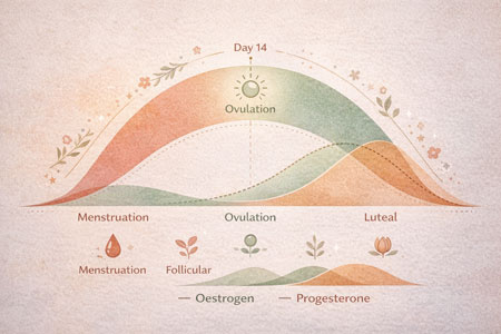 Oestrogen rises in the first half of your cycle. Many women feel clearer, more social, a little more “let’s reorganise the kitchen cupboards at 9 pm.” After ovulation, progesterone increases. Ideally, bringing calm, steadiness and deeper sleep.