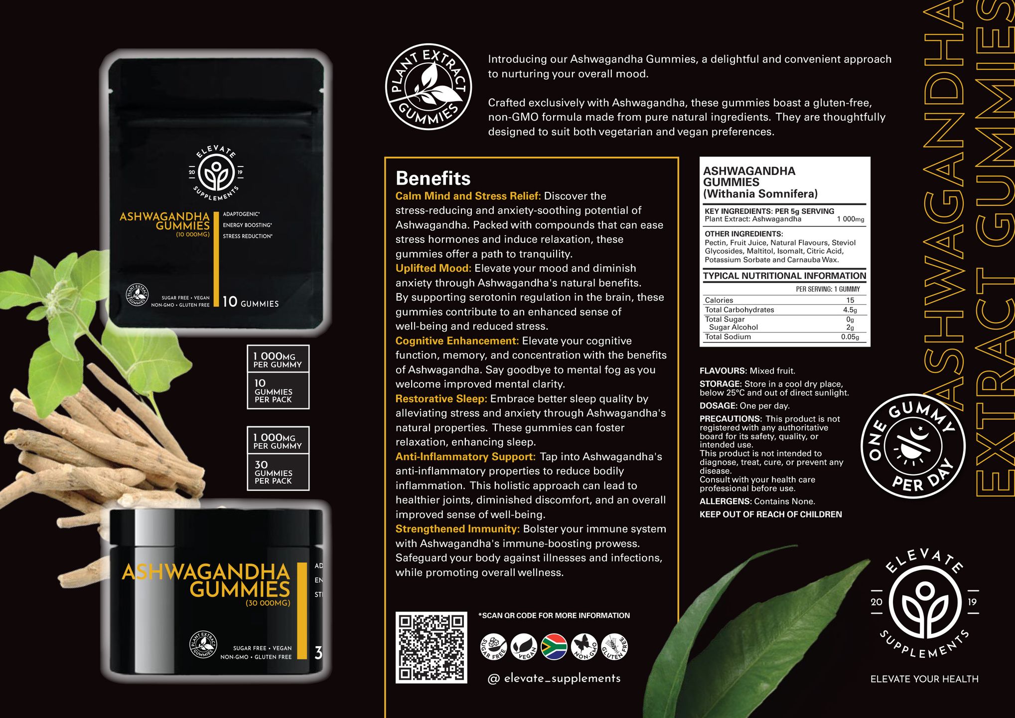 - Uplifted Mood: Elevate your mood and diminish anxiety through Ashwagandha's natural benefits. By supporting serotonin regulation in the brain, these gummies contribute to an enhanced sense of well-being and reduced stress.
