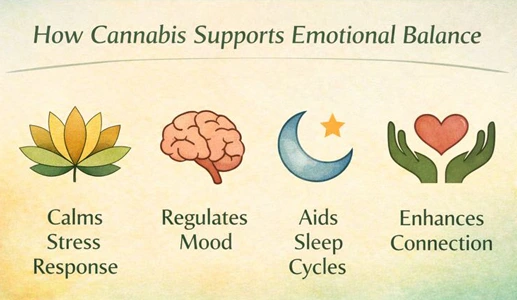 Cannabis, when chosen carefully, may help some people feel more present, relaxed, and emotionally open, particularly when paired with good sleep and self-care practices. Sleep plays a critical role here, as emotional resilience is closely tied to how well the nervous system rests and resets.