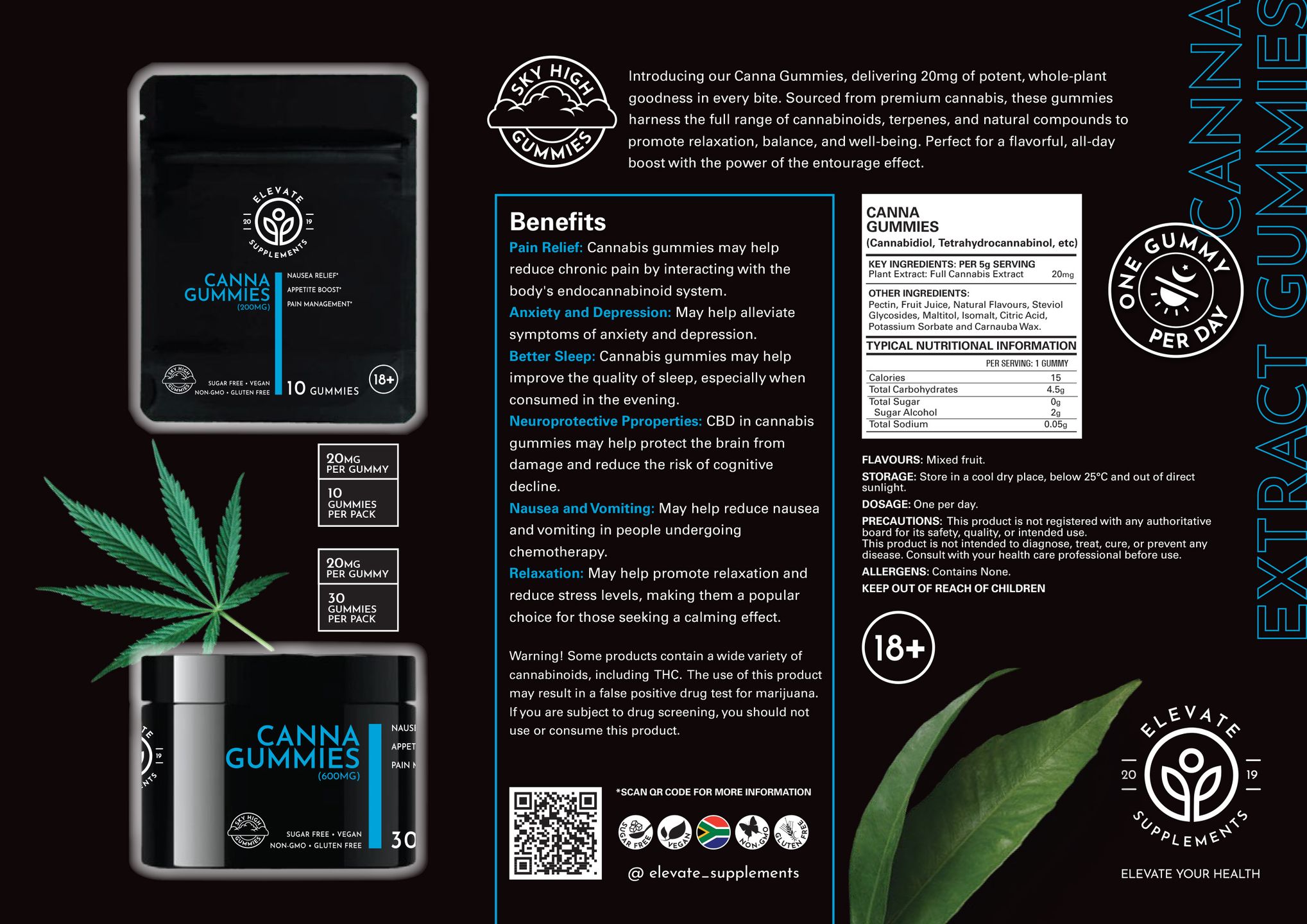 Warning! Some products contain a wide variety of cannabinoids, including trace amounts of THC (less than 0.2% THC), legally allowed by SAHPRA. The use of this product may result in a false positive drug test for marijuana. If you are subject to drug screening, you should not use or consume this product.