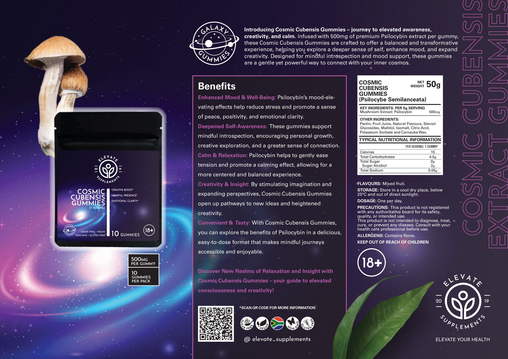 - Creativity & Insight: By stimulating imagination and expanding perspectives, Cosmic Cubensis Gummies open up pathways to new ideas and heightened creativity.